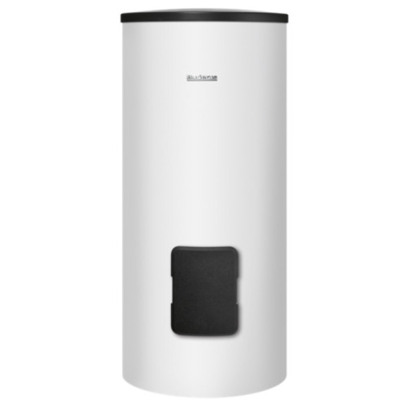 Boiler solar cilindric vertical alb Buderus Logalux, cu incalzire indirecta, echipat cu doua serpentine.